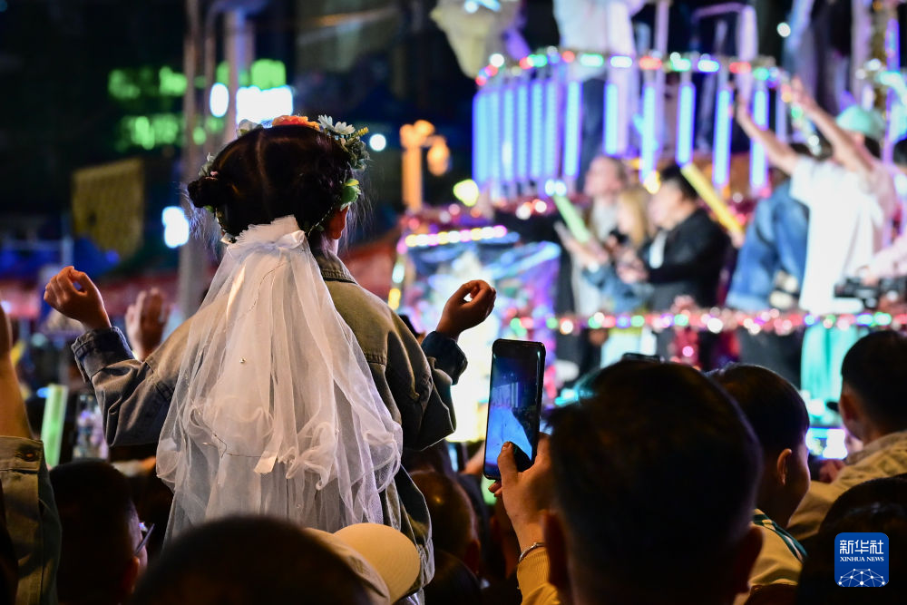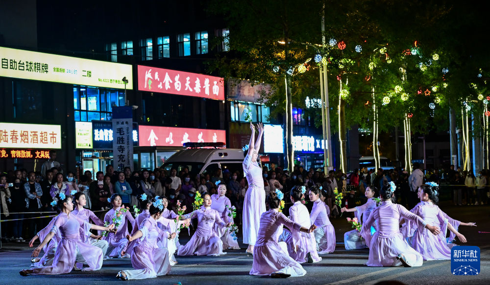 人們在西寧市豹街觀看表演(5月24日攝)。新華社記者 齊芷玥 攝
