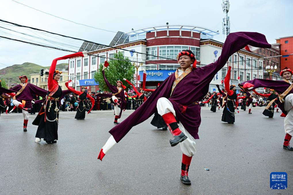 8月20日,在青海省玉樹藏族自治州囊謙縣,演員在歡迎巡游中表演。新華社記者 齊芷玥 攝