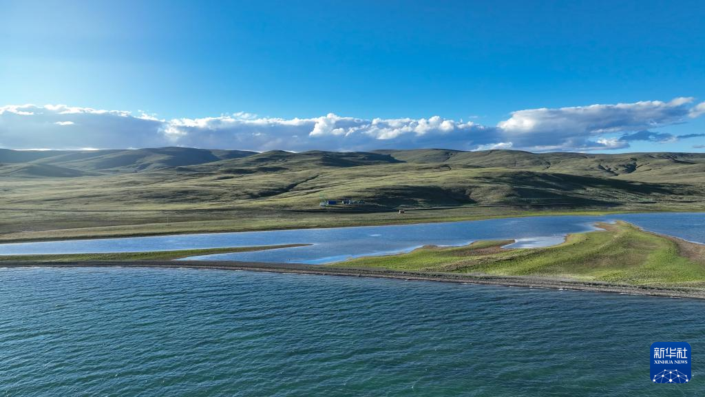 7月25日拍攝的“尕日塘秦刻石”所在地青海省果洛藏族自治州瑪多縣扎陵湖北岸(無人機照片)。新華社記者 杜笑微 攝