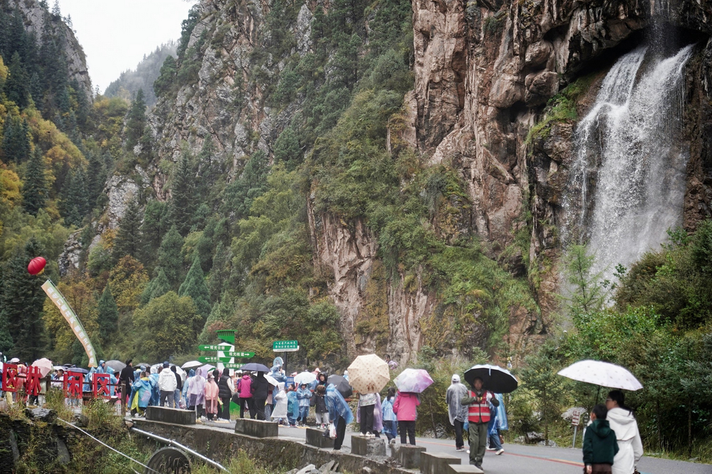 21日上午,青海門源仙米國家森林聚陽溝景區細雨紛飛,但沒有澆滅大家的參賽熱情。賽前,青海門源縣花海民族藝術團帶來了充滿活力、獨具特色的文藝表演。隨著發令槍響,參賽選手從位于仙米國家森林聚陽溝景區的起跑拱門出發,開啟了這場充滿挑戰與樂趣的徒步之旅。